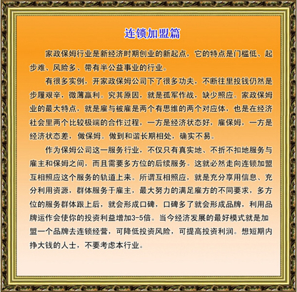 加盟要求:對(duì)家庭服務(wù)、對(duì)母嬰護(hù)理服務(wù)、對(duì)居家養(yǎng)老服務(wù)有使命感、責(zé)任感的個(gè)人和企業(yè)。